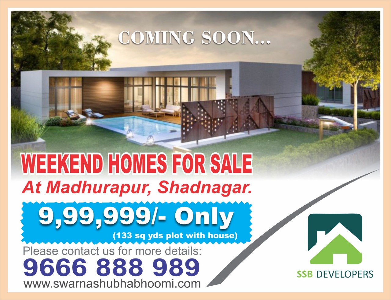 A perfect investment for your loved ones. INVEST in Weekend Homes.